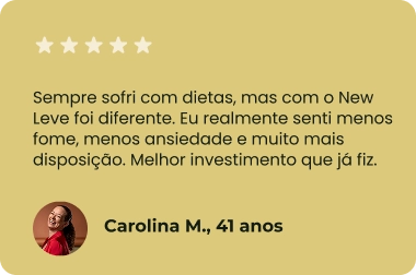 Com o New Leve, você não precisa passar fome, fazer dietas malucas ou sofrer tentando controlar a compulsão. Ele trabalha por você enquanto você segue sua rotina normal.